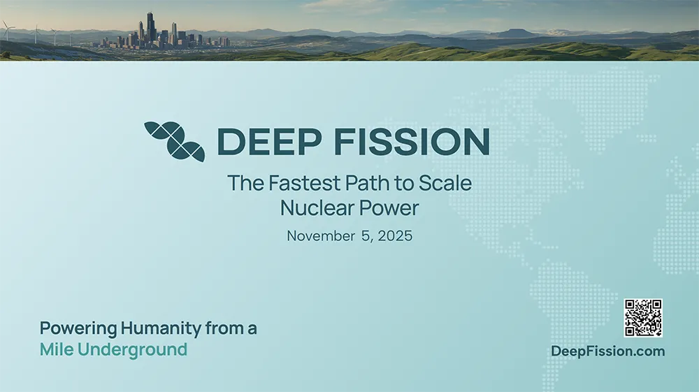 Deep Fission is revolutionizing the energy landscape with innovative technology that places a small modular pressurized water reactor in a borehole one mile underground. Founded and led by a team of seasoned scientists, engineers, and entrepreneurs, the Company is committed to delivering safe, reliable, and affordable low-carbon power at scale. Deep Fission was recently selected for the Department of Energy’s new Reactor Pilot Program and is targeting criticality by July 2026. Deep Fission was founded in 2023 by father-daughter team Elizabeth and Richard Muller. Learn more at deepfission.com.